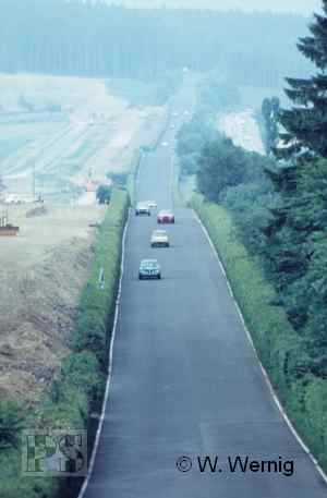 langsamerer Wagen drehte sich vor ihm im Streckenabschnitt Metzgesfeld und Hans