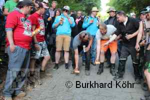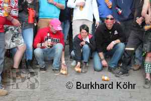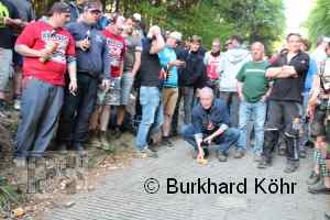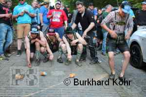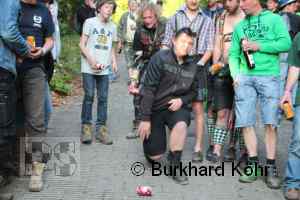 den Titel auf der Steilstrecke erringen. Keine Dose rollte weiter! Wegen der Hektik bei der Ausgabe der Bierdosen war die Startnummer