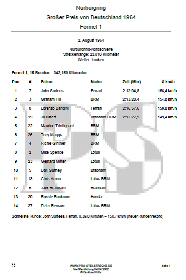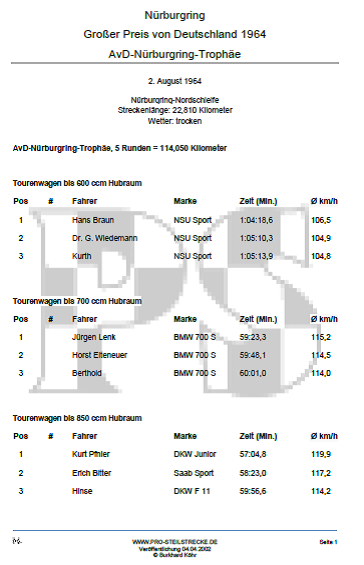 Für die Bilder und Informationen zum Großen Preis von Deutschland 1964 bedanken wir uns bei: