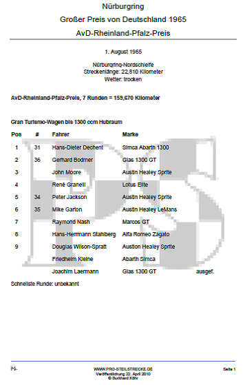 Quellen: Programmheft, automobil, powerslide, Tageszeitung, auto mobil sport, Aufzeichnungen Manfred Rommelsheim