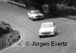 und Jack Sears mit einem Lotus Cortina beim Großen Preis der Tourenwagen.