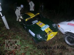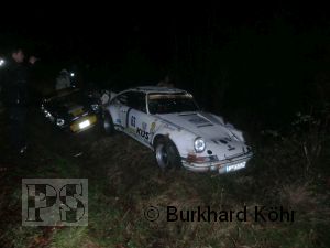mit dem Porsche 911 RS. An der selben Stelle schied auch der Marcos Mini von Peter Hinz und Martin Fischer aus. Nach nur