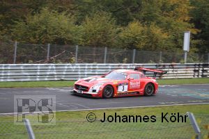 Sieger beim 9. VLN-Lauf wurde Rowe-Racing mit Christian Hohenadel und Maro Engel (Mercedes-Benz SLS AMG GT3) vor Marco Werner /