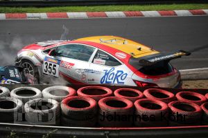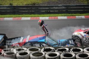 das Starterfeld dezimiert. Einen heftigen Abflug hatten Mario Merten / Jürgen Nett (Opel Astra OPC CUP) nach einer Kollision