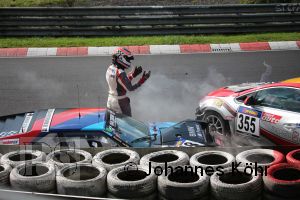 mit Dominik Thiemann / Torsten Kratz / Hajo-Franz Müller (BMW Z4) im Streckenabschnitt Schwedenkreuz. Beide Wagen erlitten
