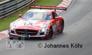 Kurz vor Ablauf der 4-Stunden-Distanz erwischte es den Mercedes-Benz SLS AMG GT3 mit der Startnummer 3. Fahrer Andreas Simonsen