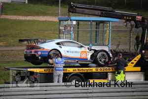 Ein Reifenschaden im Training demolierte den Aston Martin nachhaltig. Paul Dalla Lana,