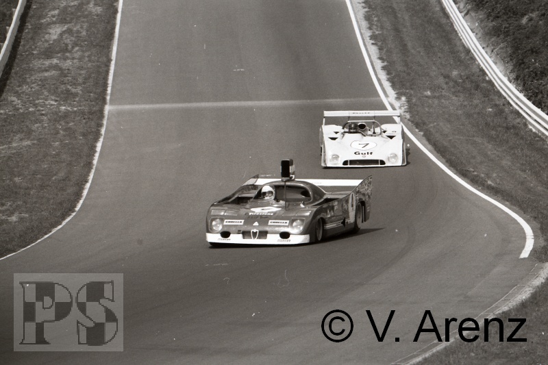 Vorsprung vor Rolf Stommelen/Carlos Reutemann (Alfa Romeo 33TT12) und Andrea de
