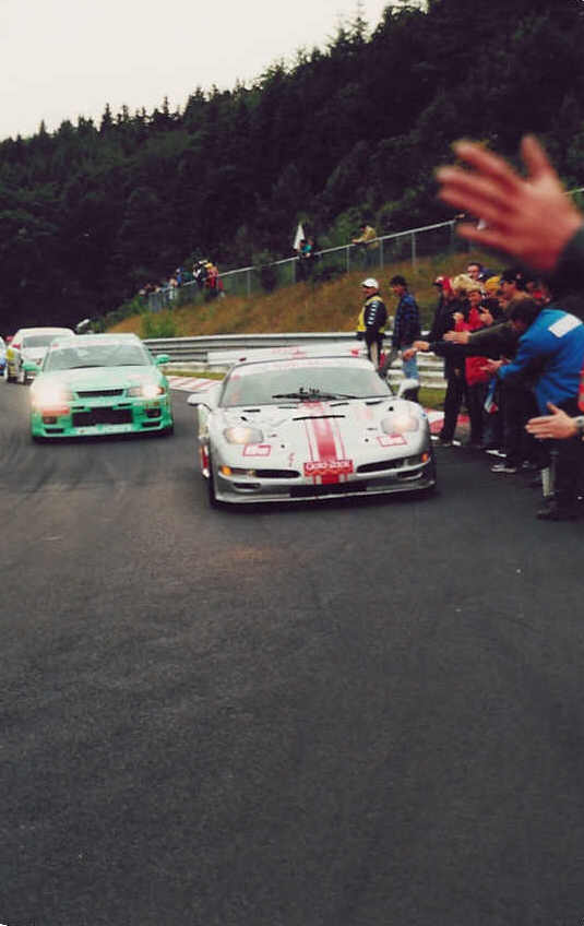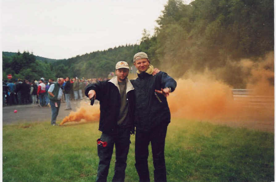 Kurios: Extrem-Sportler Dirk Auer ließ sich auf Inline Skates von TV-Kommentator Burkhard Bechtel über die Nordschleife ziehen (Bilder fehlen leider).