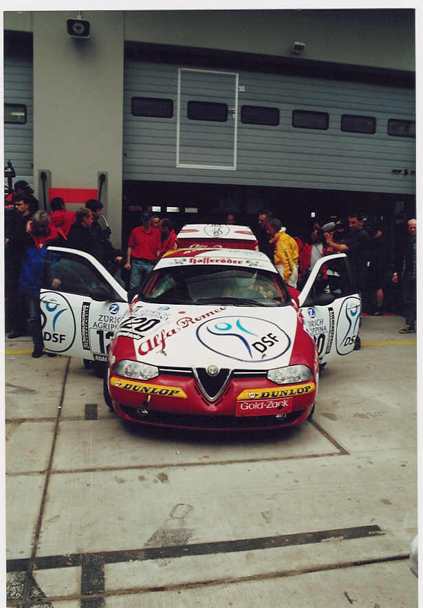 Mit Christian Danner, Nicola Larini und Stefano Modena auf dem Ex-STW-Alfa Romeo 156 waren drei ehemalige Formel-1-Piloten am Start. Der Renneinsatz war wie erwartet nur kurz. Nach der dritten defekten Antriebswelle konnte die Box geschlossen werden. Übrigens für Nürburgringkenner: Christian Danner hält in der Formel 2 den Rundenrekord für die Nordschleife (ohne Grand-Prix-Kurs).
