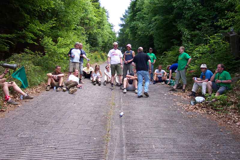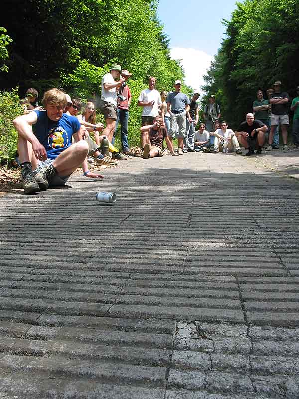 Kurz vor zwölf war es dann soweit: Zum zweiten Male sollte das Internationale Bierdosenrollen - die einzige Rennveranstaltung auf der Steilstrecke - stattfinden.