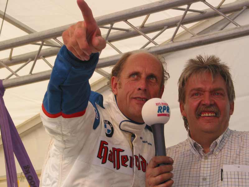 Kurz bevor wir dann zurück in den Wald wollten, trafen wir dann rein zufällig den Hans-Joachim Stuck vor dem Dorint-Hotel. Seine erste Frage, nachdem wir uns als Steilstreckler bekannt machten: "Ist die Steilstrecke schon hergerichtet ?". Die Geschichte von seinem Vater ist nach wie vor scheinbar nicht für uns ein absolutes Schmankerl.