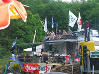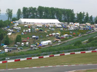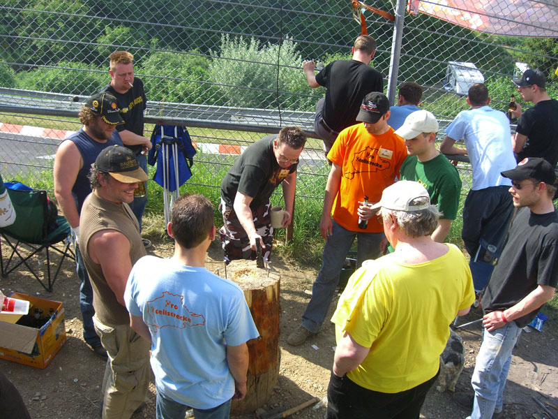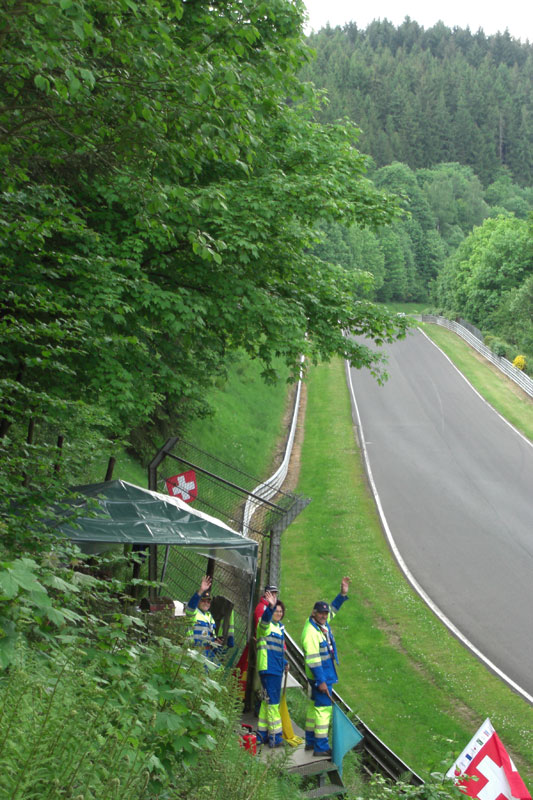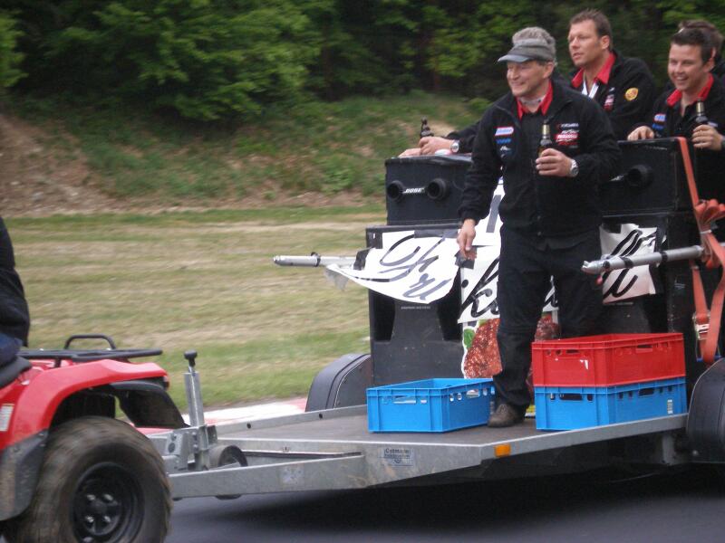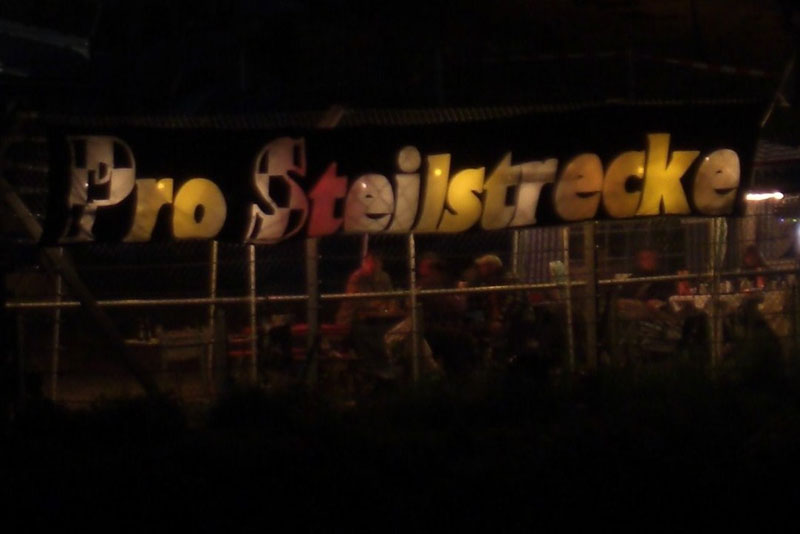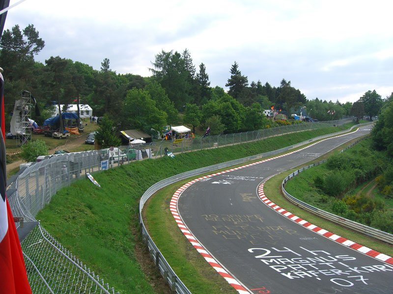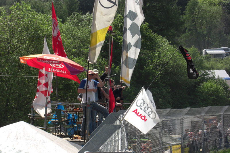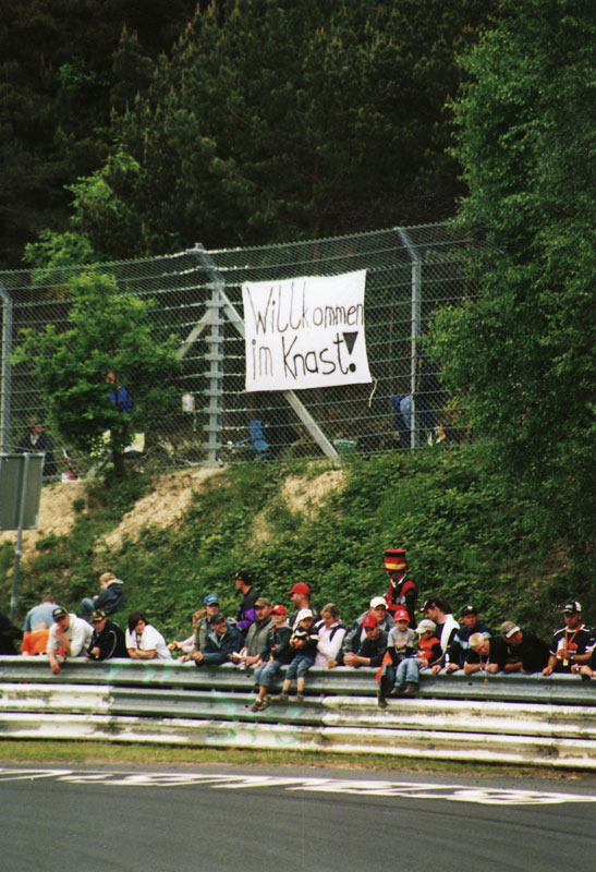 Im Klostertal, am Fuße der alterwürdigen Steilstrecke, schlugen die Fans der “Initiative pro Steilstrecke“ ihr Hauptquartier auf. Besten Dank an Rudi, Heini den Jüngeren, Jan, Tommy und Manuel für ihren Einsatz!!! In den folgenden Tagen folgten Tausende dem Lockruf der grünen Hölle. Der Veranstalter ADAC Nordrhein zählte 220.000 Fans rund um den Mythos Nürburgring.