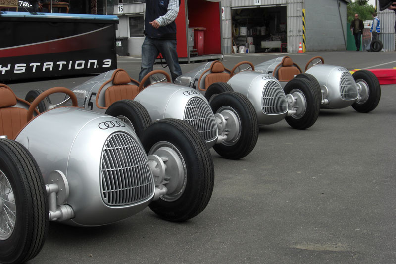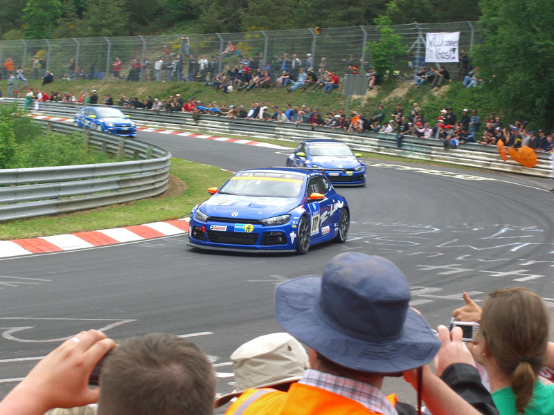 Timo Bernhard und Roman Dumas pilotierten zwei Porsche RS Spyder (Prototypen aus der LMP2-Klasse) auf zwei schnellen Runden über die Nordschleife. Die Fans spitzten die Ohren und schärften ihre Augen bei dieser tollen Showeinlage. Schade, schade, dass die Nordschleife nicht mehr für Sportwagen zugelassen ist. Jetzt wo die neuen wunderschönen FIA-Fangzäune die Nordschleife krönen sollte es auch für Sportwagen zukünftig wieder „Feuer frei“ auf der schönsten Rennstrecke der Welt heißen.