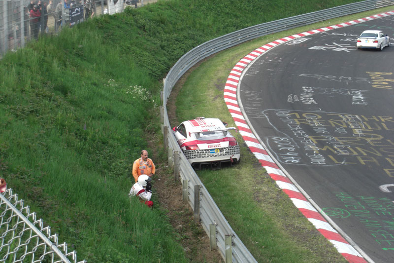 Mit großem Medienrummel hatte sport auto den Audi R8 in der SP7-Klasse angekündigt. Doch blieb es bei der Ankündigung. Der Audi mit der Startnummer 41 wurde beim Rennen nicht gesehen. Angeblich lief der Audi R8 im 2. Zeittraining zweimal über die Nordschleife. Danach wurde er im Fahrerlager abgestellt. Bleibt nur zu hoffen, dass dieser Rennwagen zukünftig häufig in der BFGoodrich Langstreckenmeisterschaft eingesetzt wird. Ein Rennwagen, der in irgendeiner Garage sein Dasein fristet ist so interessant wie das Standbild nach Sendeschluss im Fernsehen.