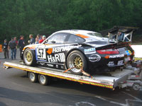 Die Landung der Apollo 11 bannte vor 39 Jahren am 20. Juli 1969 Millionen Menschen vor den Fernsehern. Im Jahre des Manthey landete der Gumpert-Apollo auf der Nordschleife und erfreute die Herzen der 220.000 Fans. Auch wenn Projektmann und Pilot Heinz-Harald-Frentzen häufiger, unfreiwilliger Gast in der Box war, machte sein Apollo Furore. Verfügte der Apollo in der Eifeler Ausführung nicht über einen Raketenantrieb, so versorgte neben einem Ottomotor noch ein Elektromotor die flache Flunder mit Power. Zwei Getriebeschäden warfen den Gumpert-Apollo früh aus dem Rennen.