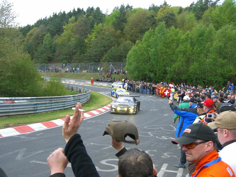 Ein Motorsportfan lässt sich vom Wetter nicht abschrecken. Frei nach dem Motto: "Es gibt keine schlechtes Wetter, sondern nur falsche Kleidung" wollte keiner den Ring-Klassiker verpassen. Am Ende zählten die Veranstalter 220.000 Zuschauer am gesamten Rennwochenende. Zwar wurde die Zuschauerzahl aus dem Vorjahr nicht erreicht, da die Tagesgäste am Samstag und Sonntag nur spärlich erschienen, aber dies war kaum zu bemerken. So blieben die 24-Stunden-Fans unter sich und erlebten ein packendes Rennen, dass vom Favoritensterben der Werksteams geprägt war. Das hohe Tempo über 24-Stunden auf der schwierigsten Rennstrecke der Welt forderte seinen Tribut.