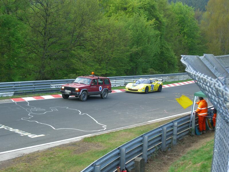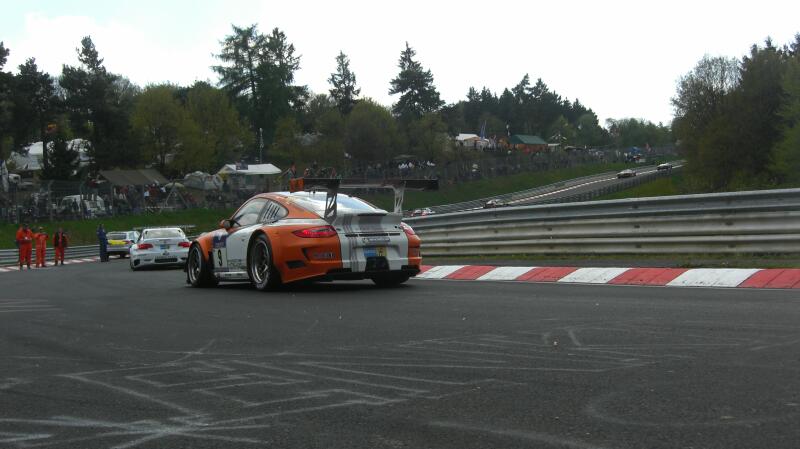 und den Porsche seitlich traf, blieb der Manthey-Porsche ein paar Kilometer
