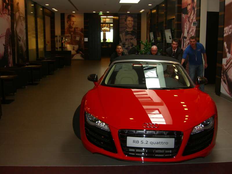 Ein Audi R8 Spyder für die Gäste des Lindner-Hotels im Foyer.