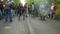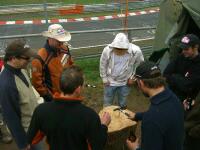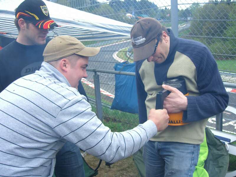 Nach dem Bierdosenrollen ging es für viele Fans in das PS-Basis-Camp. Beim Kräftemessen an der Dalli-Dalli-Kanne ging es um ein 5-Liter-Fass, dass von den Vredener Ringfans Henri, Benne, Schwieti, Sticke und Ocker gespendet wurde. Echt stark: Ben von Timebomb. Er drückte den Ring-O-Meter bis zur Skala "Steilstrecke" hoch.