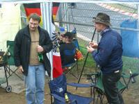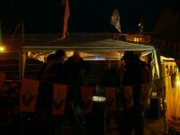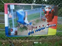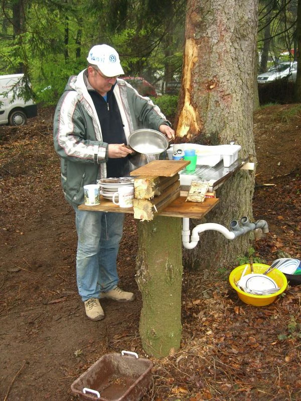 Am Freitag sammelten Kappa, Heini der Ältere und Eifelburki Eindrücke vom Klostertal bis zum Brünnchen. Es stand auch ein Besuch bei den Freunden von Hütte Geiseke auf dem Programm. Dieses Jahr hatten Daniel, Dr. Dichtmann und Co. sogar einen Geschirrspüler vor Ort. Ein Blickfang waren die T-Shirts und das Banner "Die letzte Kurve" der Geiseker. Letztes Jahr hatte "Stuart from Australia" im Eschbach zu viel Gas gegeben und die letzte Kurve nicht mehr geschafft.