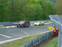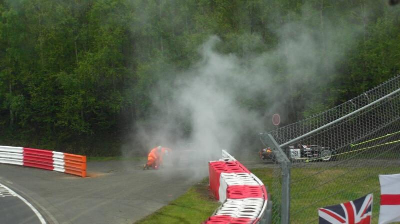 Metzgesfeld nach Leitplanken-Kontakt zurück auf die Nordschleife geworfen wurde