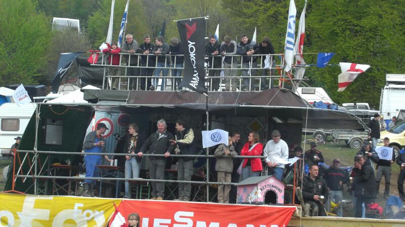 Am frühen Nachmittag stand der traditionelle "Gang nach Goscha" bzw. die Wanderung zum Wehrseifen an. Während die Schevenhütter unterwegs waren, folgten die restlichen Steilstreckler und Vredener etwas später. Neben dem Besuch im Wehrseifen bei Fauli & Co. ging es noch weiter zum Metzgesfeld. Heini der Jüngere hatte mit den Heinsbergern eine geniale Tribüne aufgebaut. Hervorragend ausgestattet und ein toller Blick auf die Rennstrecke. Die Youngtimer ließen es im Metzgesfeld so richtig krachen.