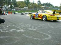 Ein Dreher in der Klostertal-Kurve mit einem Porsche.
