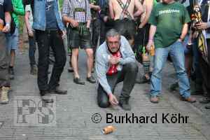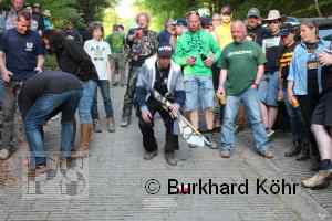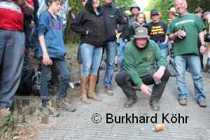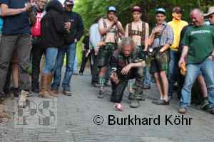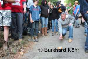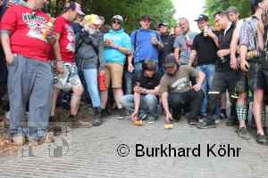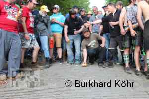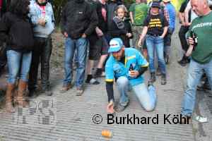 den Titel auf der Steilstrecke erringen. Keine Dose rollte weiter! Wegen der Hektik bei der Ausgabe der Bierdosen war die Startnummer