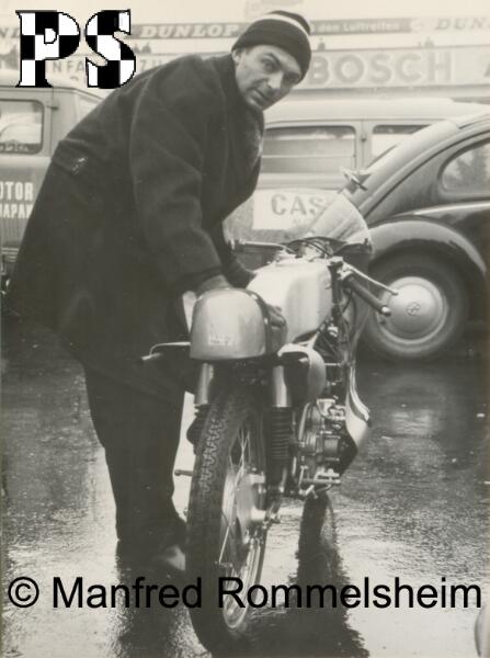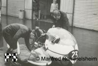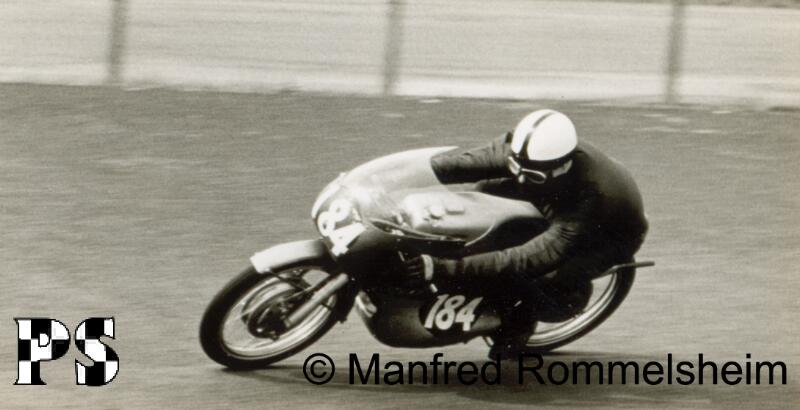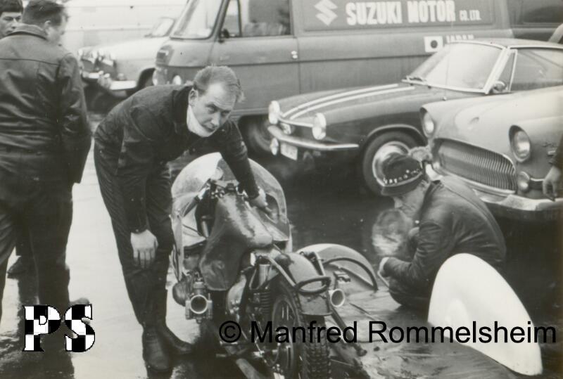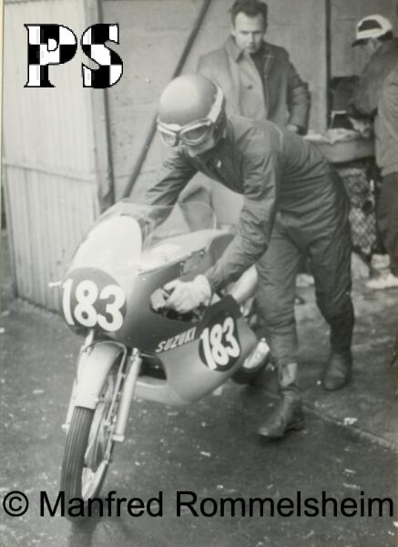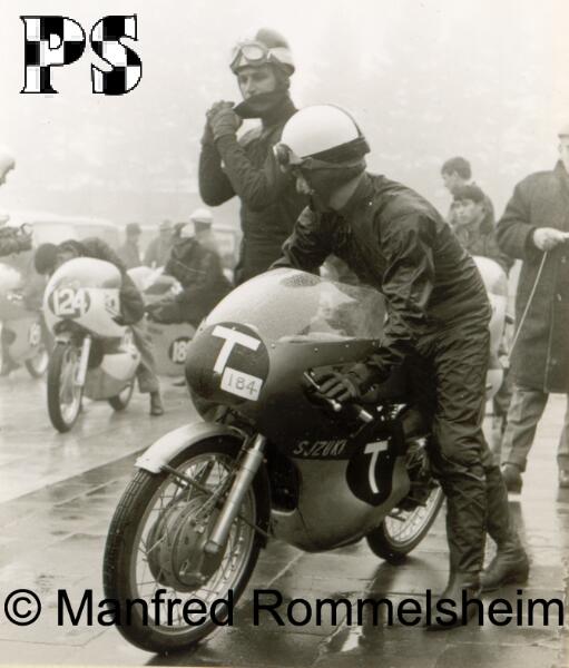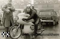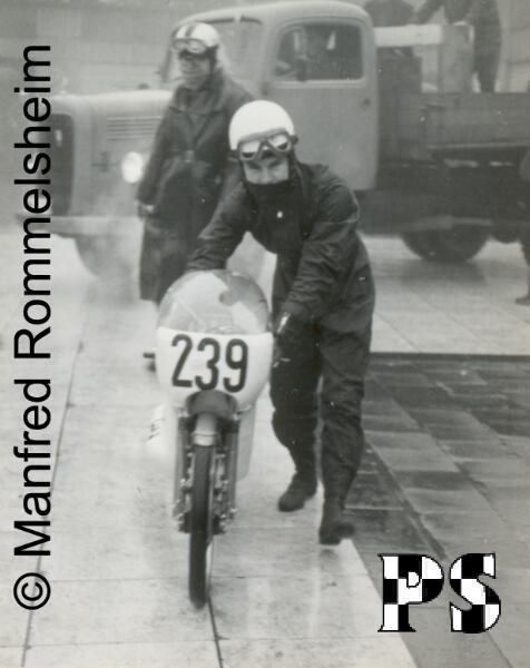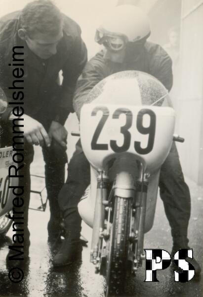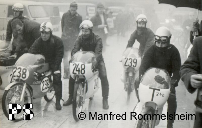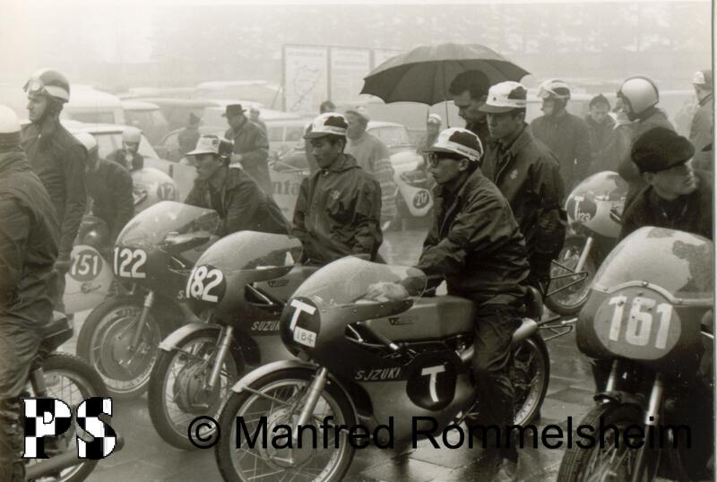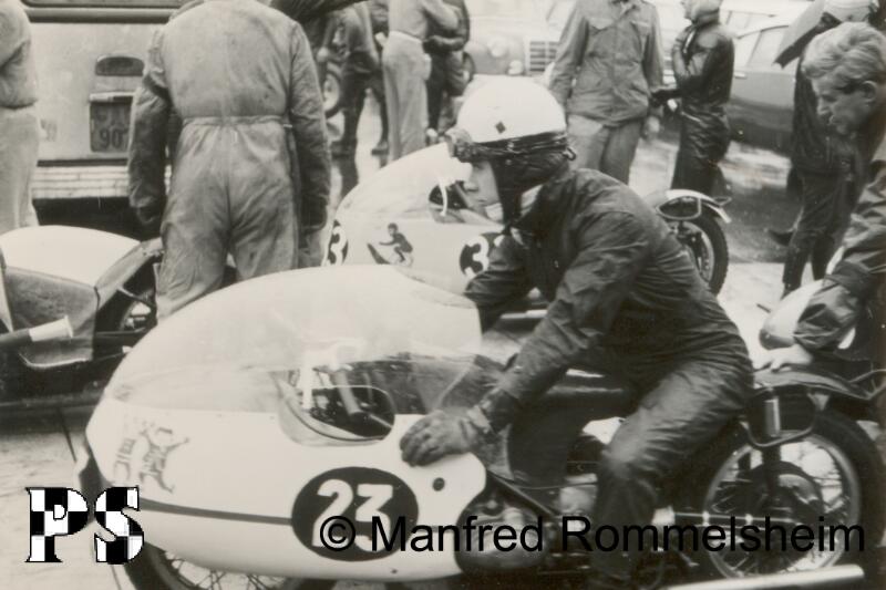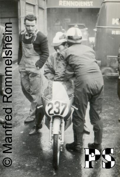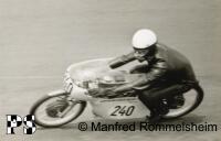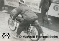 Ernst Degner (Suzuki) am Start zum Rennen der Klasse bis 250 ccm Hubraum. Er belegte den 4. Platz. | Jürgen Karrenberg (Honda) startete in der Klasse bis 250 ccm Hubraum. |