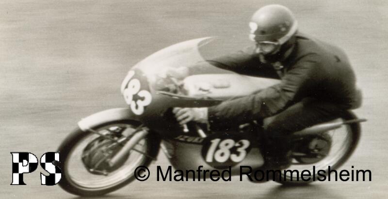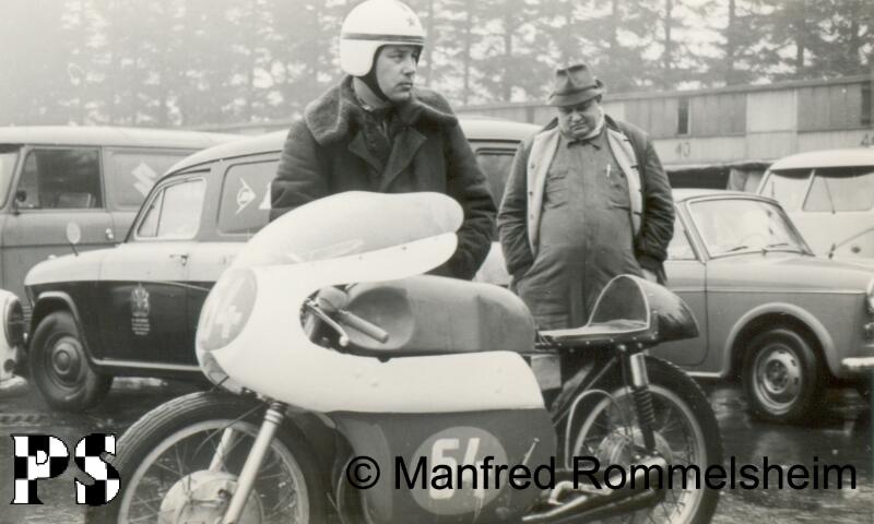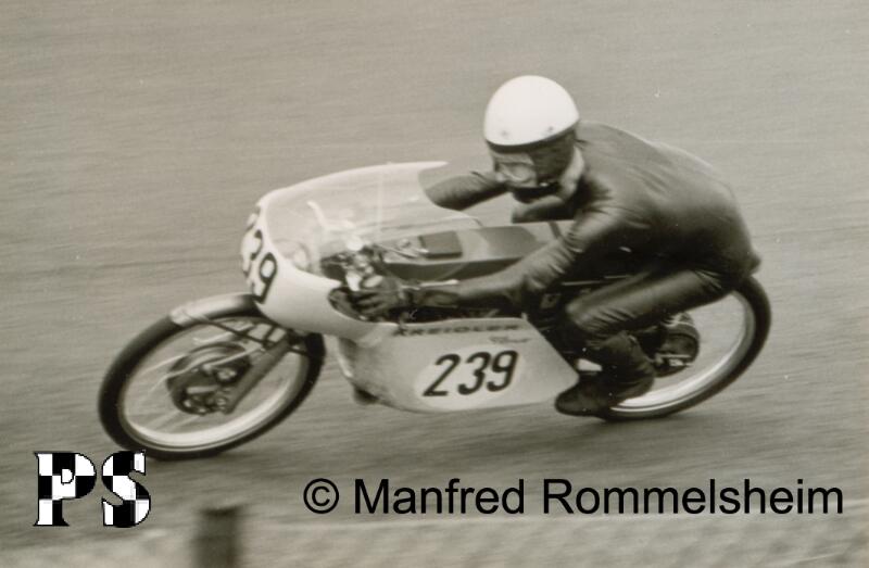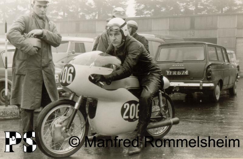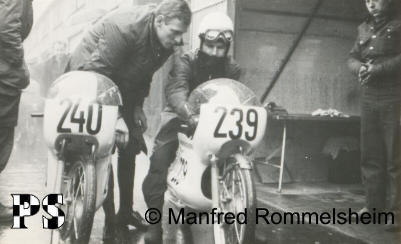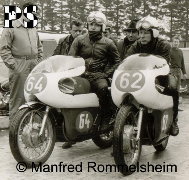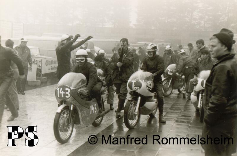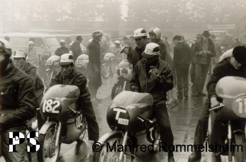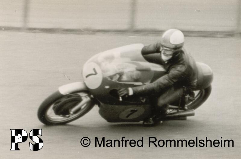 Ernst Degner (Suzuki) am Start zum Rennen der Klasse bis 250 ccm Hubraum. Er belegte den 4. Platz. | Jürgen Karrenberg (Honda) startete in der Klasse bis 250 ccm Hubraum. |