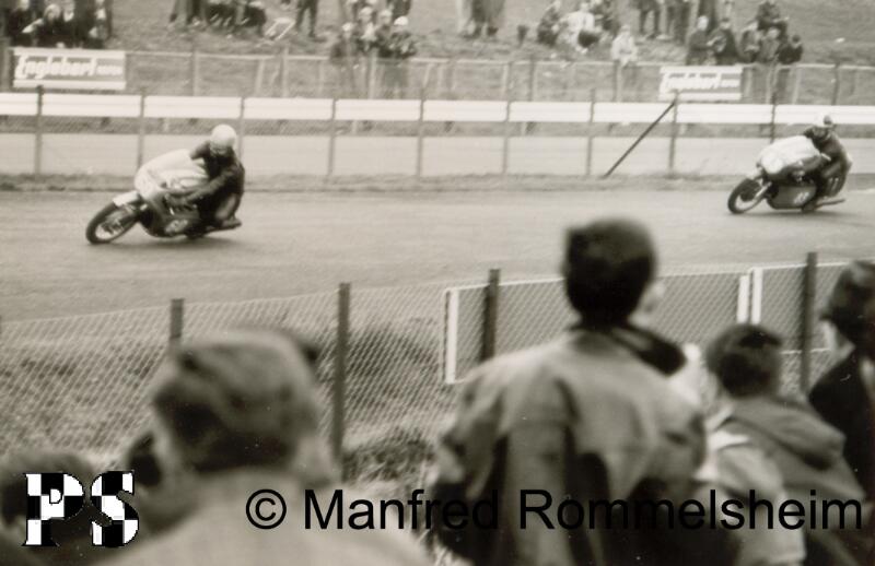 Der vom Rennstall Morini zu MV Augusta gewechselte Giacomo Agostini fuhr im 350er Rennen eine neue Dreizylindermaschine und schlug am Samstag seinen Lehrmeister Mike Hailwood, der die ältere Vierzylinder-MV fuhr.