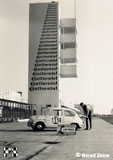 Bernd Zeine mit seinem Fiat-Abarth vor dem Contiturm.