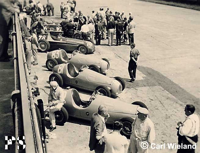 Die Alfa Romeos von Fangio (75), Farina (76), Bonetto (77) und Pietsch (78).