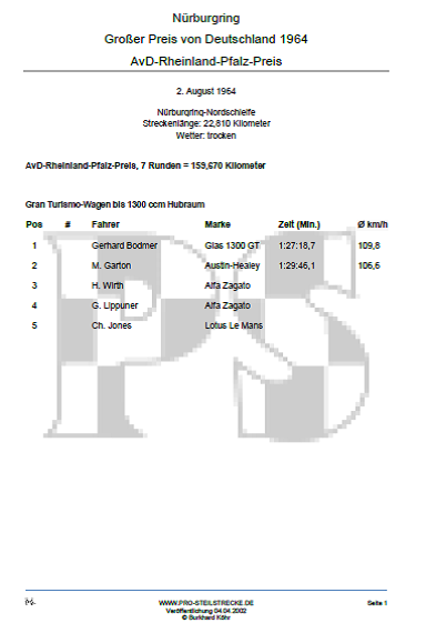 Für die Bilder und Informationen zum Großen Preis von Deutschland 1964 bedanken wir uns bei: