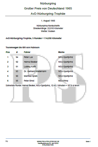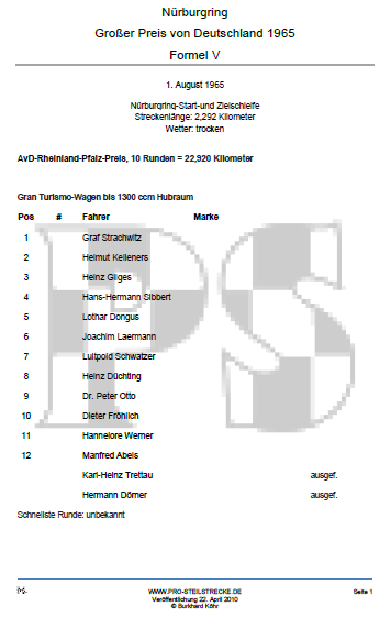 Quellen: Programmheft, automobil, powerslide, Tageszeitung, auto mobil sport, Aufzeichnungen Manfred Rommelsheim