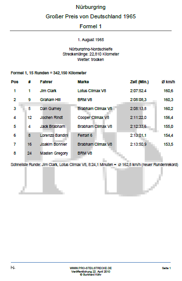 Für die Bilder und Informationen zum Großen Preis von Deutschland 1965 bedanken wir uns bei: