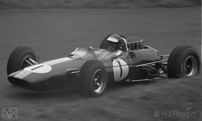 vor Graham Hill und Jacki Stewart. John Surtees hatte mit seinem Ferrari 12 Zylinder Schwierigkeiten und