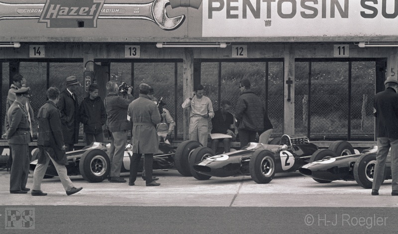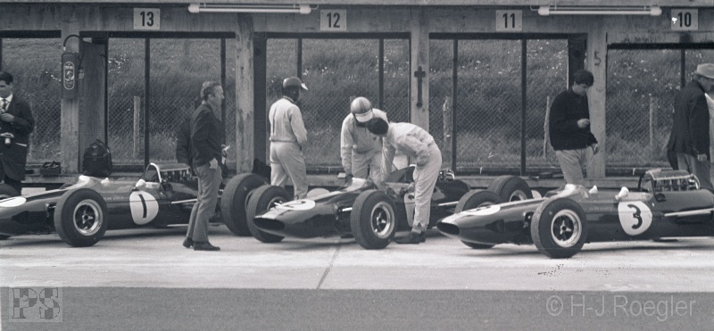 musste er seinen BRM an der Box abstellen. Chris Amon (Lotus-BRM) schied mit Motorschaden aus. Er fuhr mit
