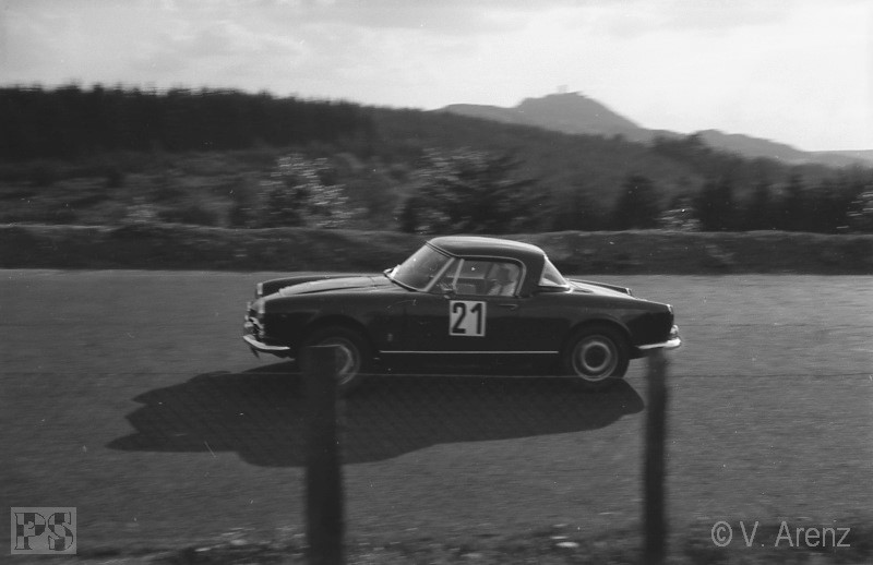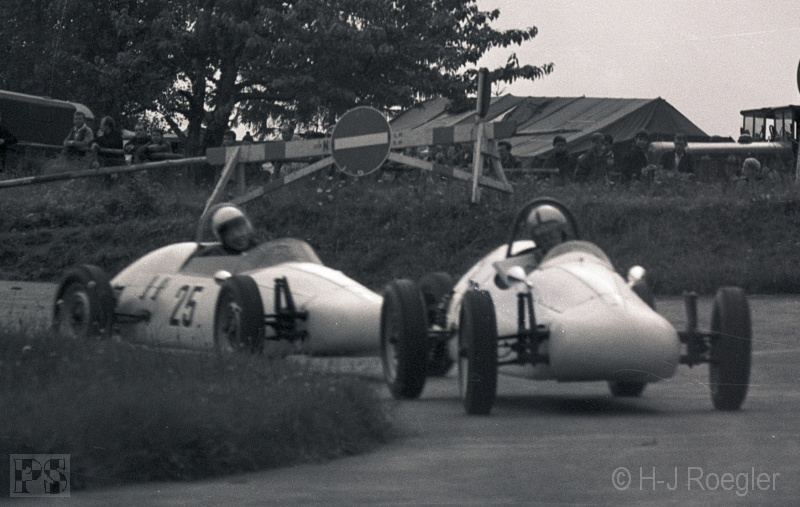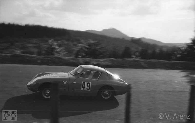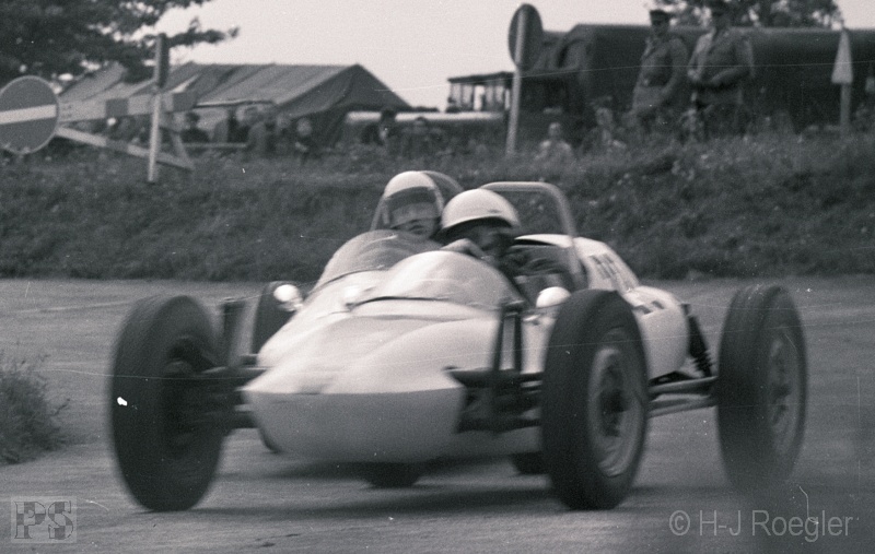 Streckenabschnitt Pflanzgarten einen schweren Unfall mit Peter Taggart (Austin-Healey Sprite). Beide Fahrer