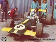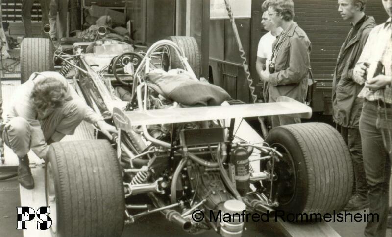 vor dem Abschlusstraining noch in Dienst gestellten Lotus 49 B. Das Cockpit war