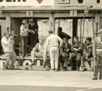 räumen lassen, da viele Zuschauer sich unter die Rennfahrer und Monteure
