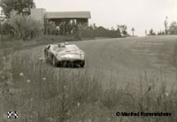 Beim 1000-Kilometer-Rennen 1956 kam Paul Frère auf seinem Jaguar D-Type in der 7 Runde zwischen den Streckenabschnitten
