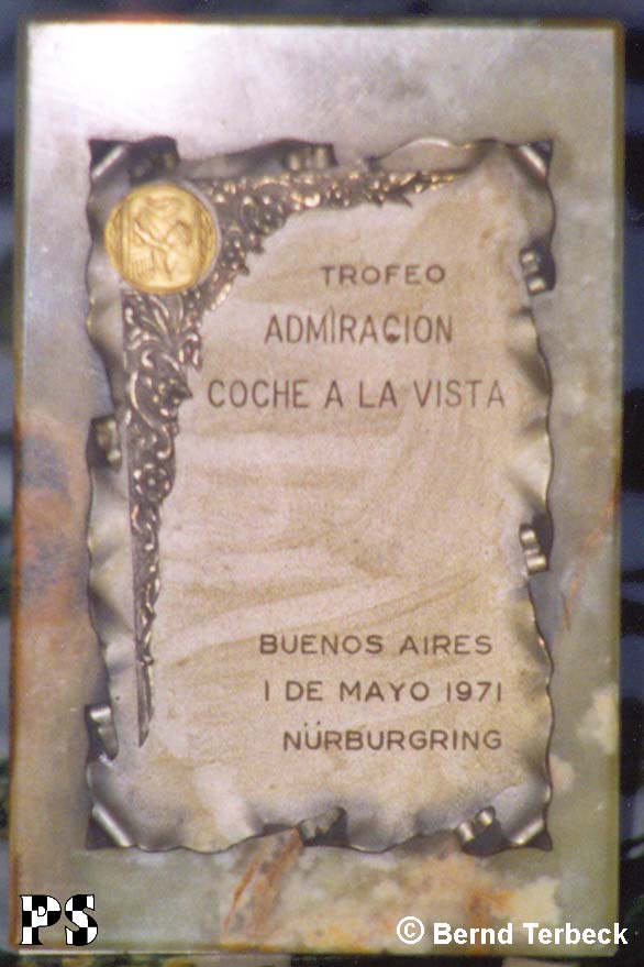 Das Eifelrennen 1971 beendete Bernd Terbeck als bester deutscher Fahrer. Dafür erhielt er eine Trophäe von Carlos Reutemann, gestiftet vom argentinischen Motorsportclub. Die Trophäe ziert heute noch das Wohnzimmer von Bernd Terbeck.