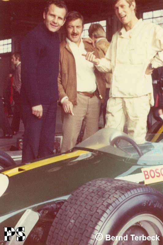 Auch schon in der guten alten Zeit wurde die Prominenz vom Motorsport angezogen wie die Motten vom Licht. Beim Eifelrennen 1969 war Howard Carpendale im Fahrerlager anzutreffen. Er durfte in den Brabham von Bernd Terbeck „reinrutschen“. Der Ausstieg gestaltete sich für Howard Carpendale ungleich schwieriger. Dabei hätte er beinahe die Frontscheibe – aus Plexiglas – beschädigt, als er sich aus dem Wagen herausdrücken wollte. Dafür gab es einen kurzen, lauten und etwas unfreundlichen Kommentar von Bernd Terbeck.