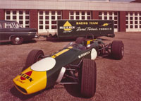 Terbeck seinen Brabham für die Weltrekordfahrt mit einem Wohnwagen im Schlepptau