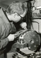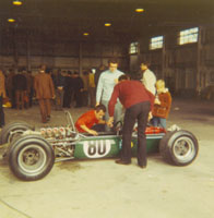 Erwin Dericks, damaliger Monteur von Rolf Stommelen, den Wagen genauer unter die