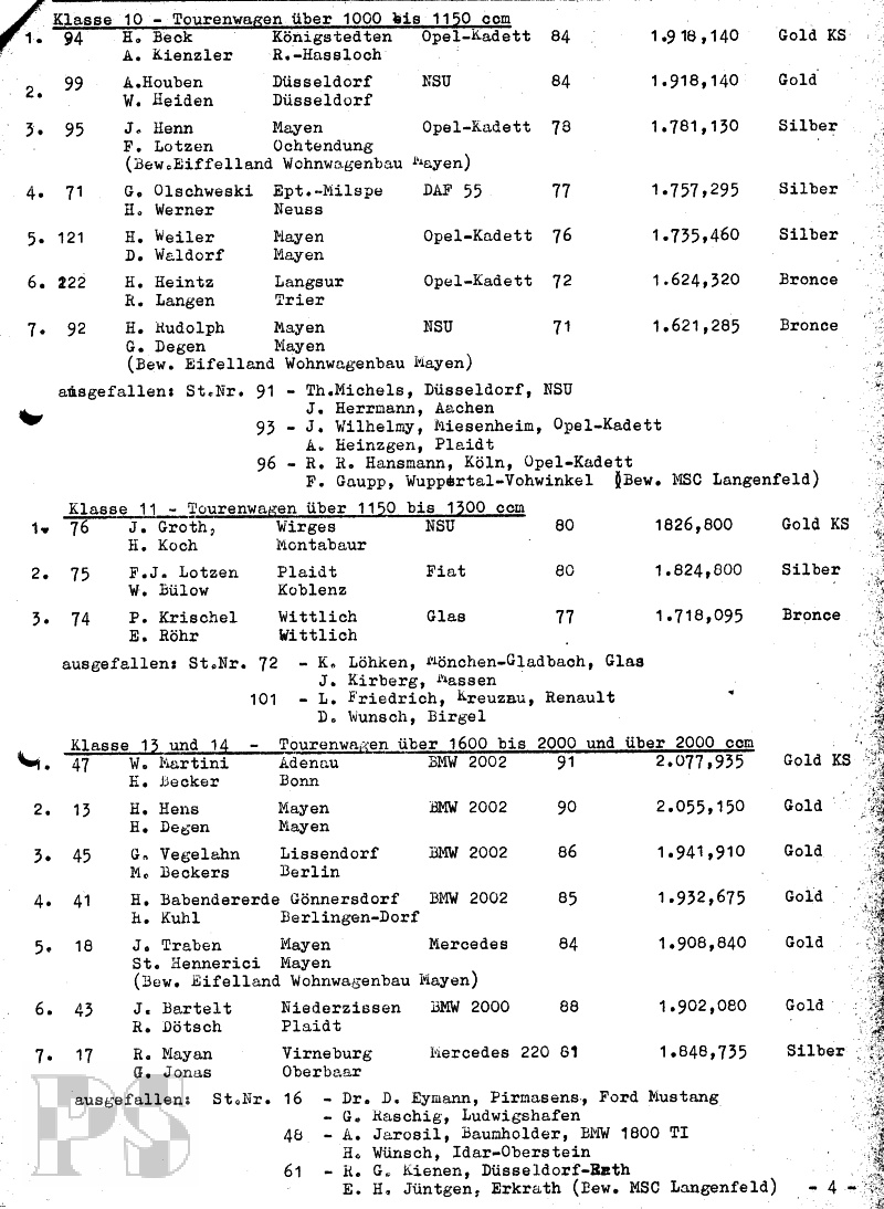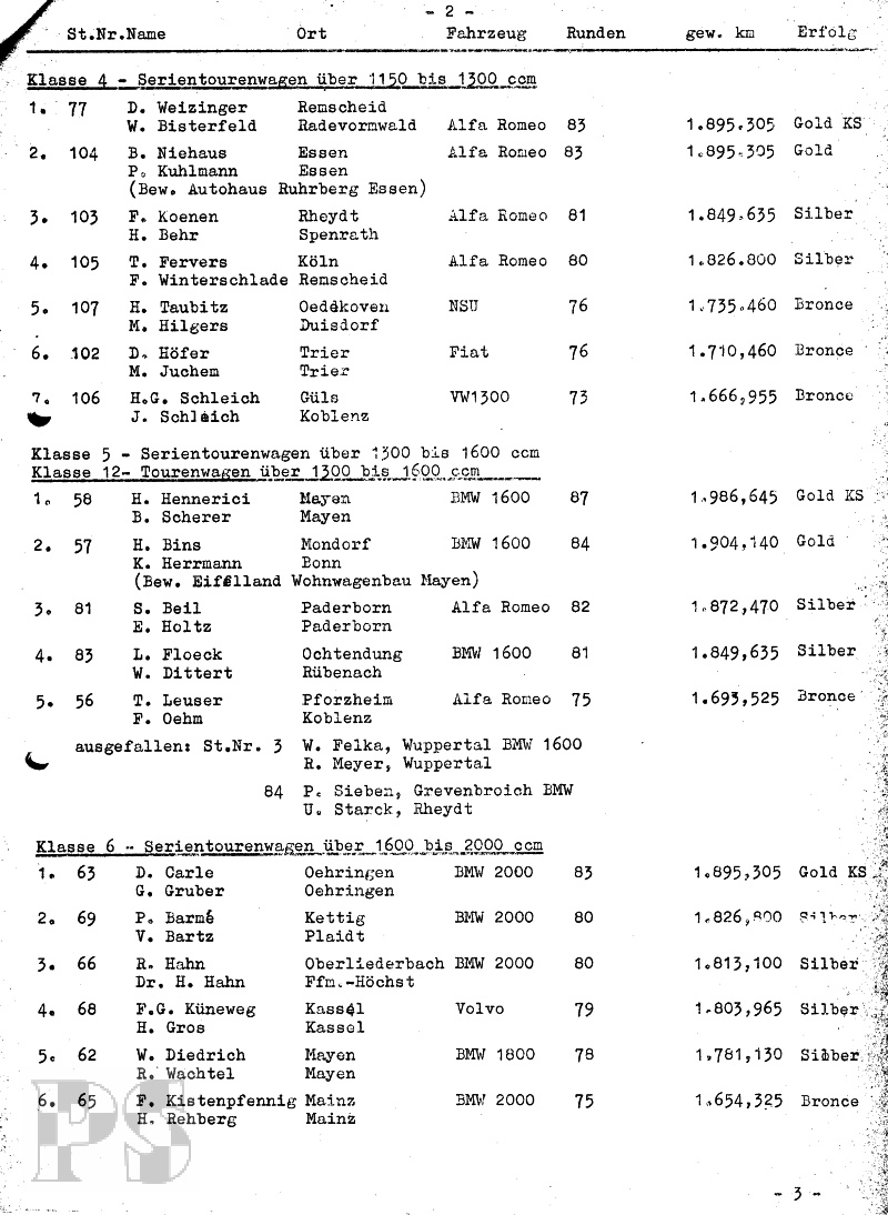 62 Fahrzeuge die Dauer- und Leistungsprüfung. Sieger wurden die Porsche-Piloten Eberhard Sindel/Dr.