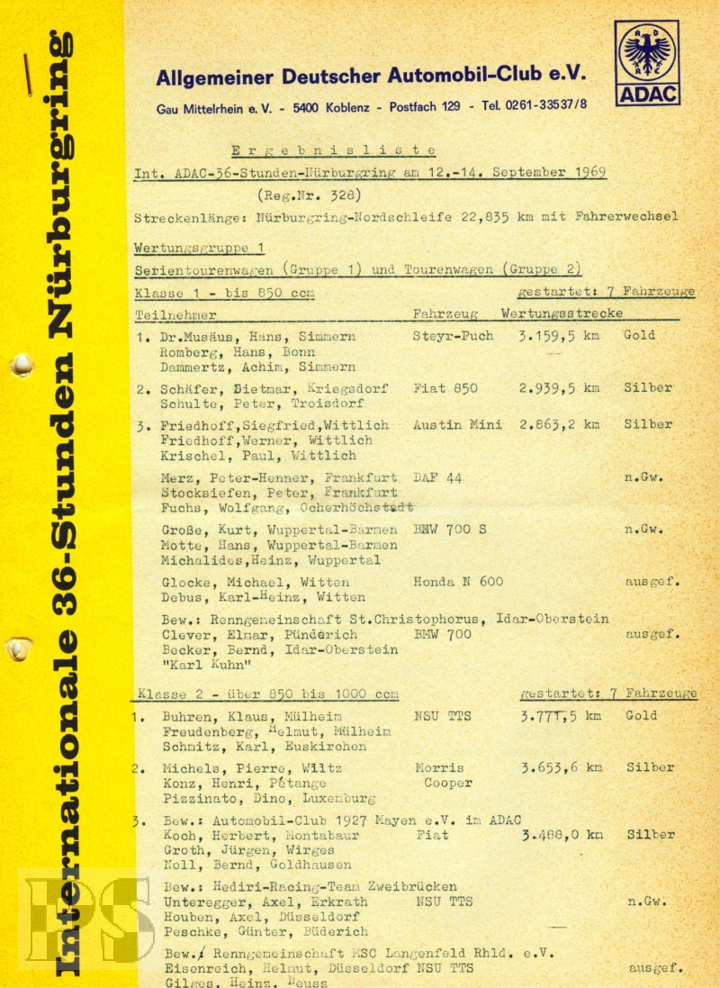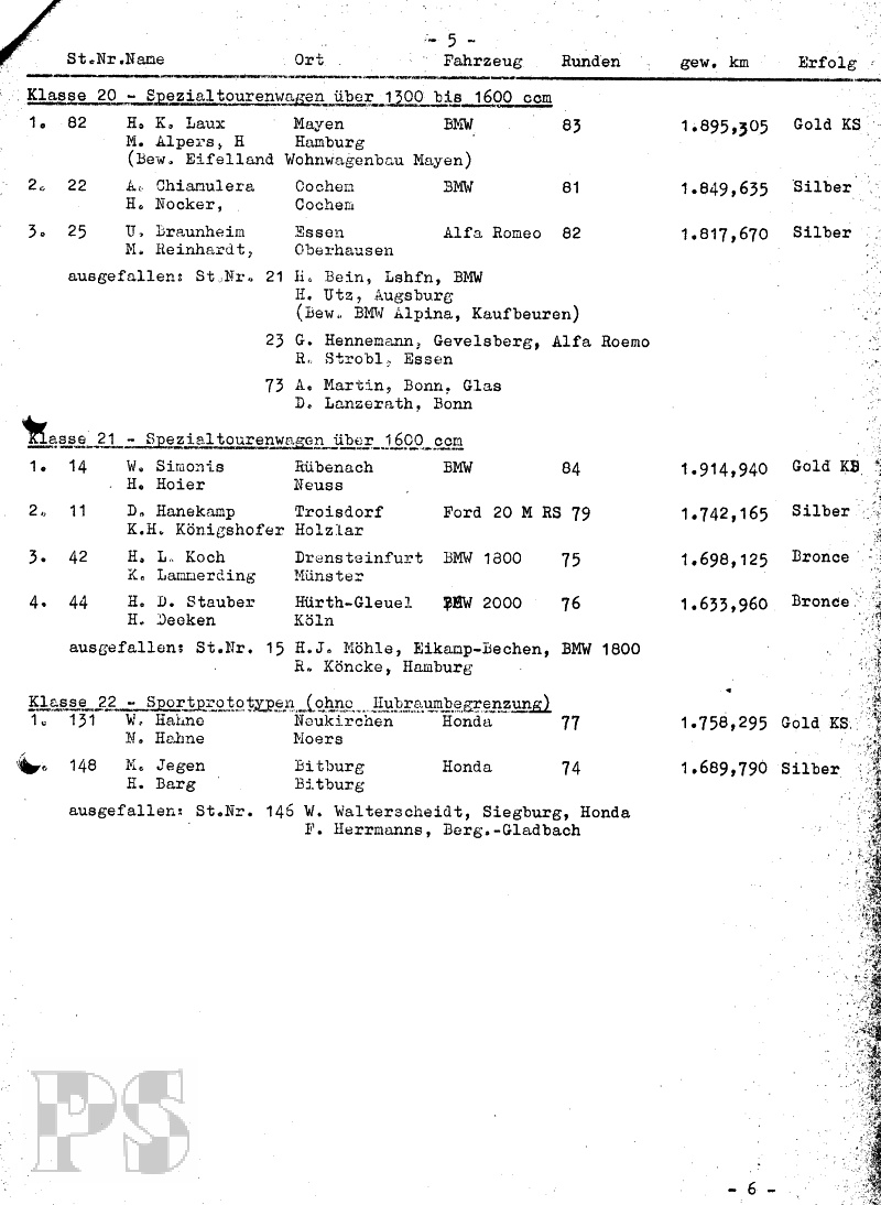 Quellen: Aufzeichnungen Horst Hoier, ONS-Mitteilungen, auto mobil sport