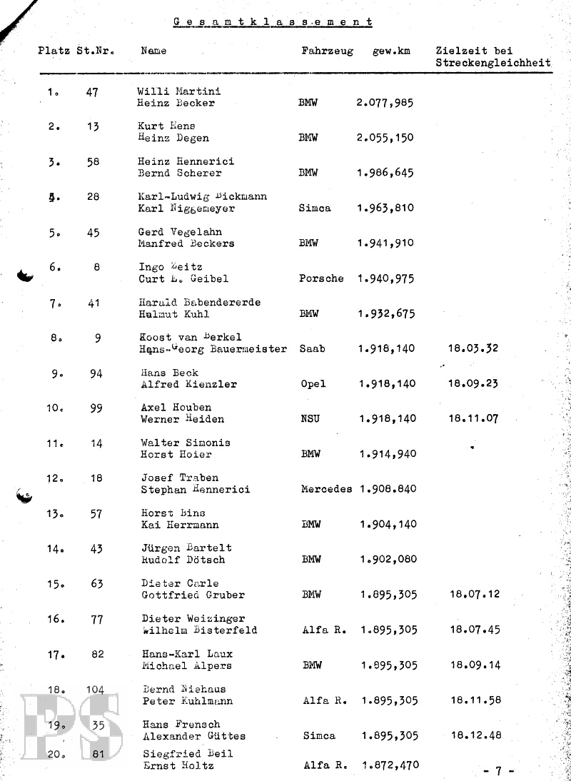 Gesamtdistanz von 200 Kilometer belegte er mit Beifahrer H. Kahlen den 10. Platz in ihrer Klasse.